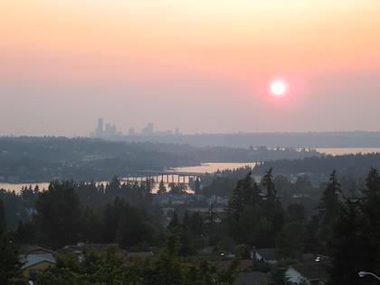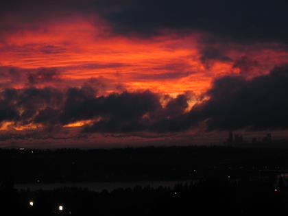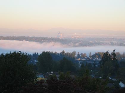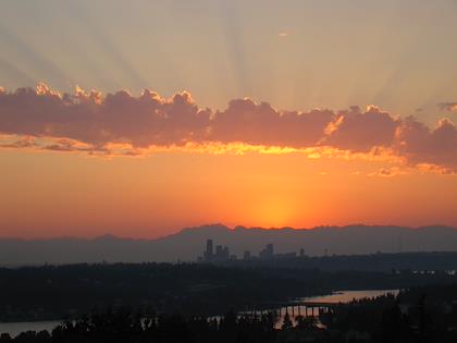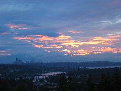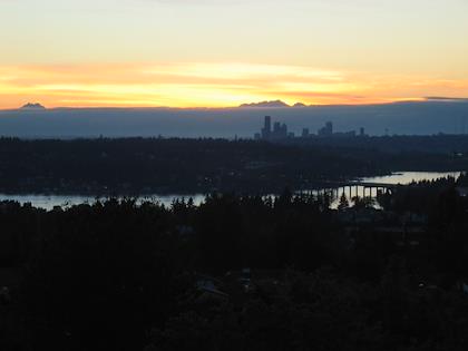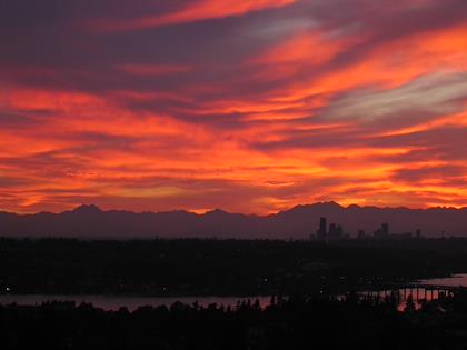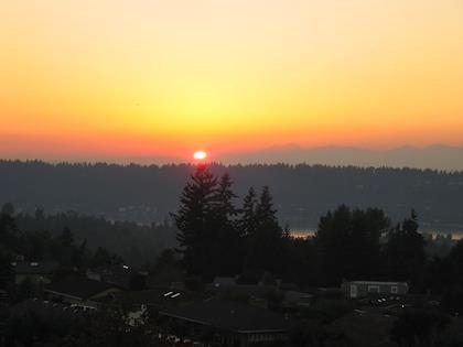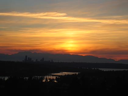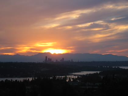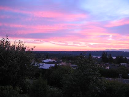 9/8/04 - you can see the Seattle skyline in the right hand side of the picture. The sun sets lots further south this time of year.