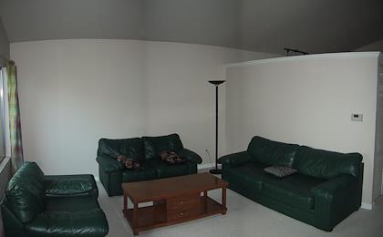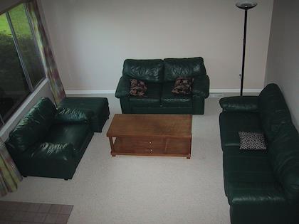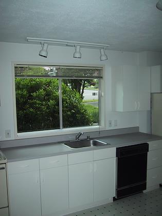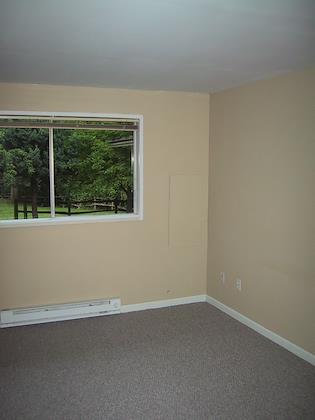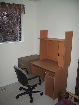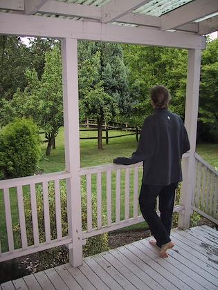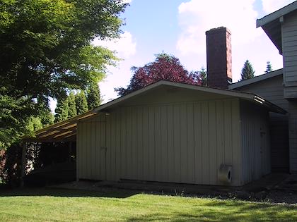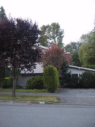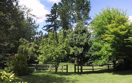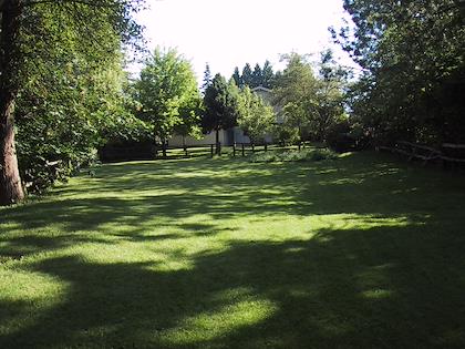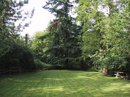 The backyard, after the lawn has been freshly mown. This looks out towards the trail to Marymoor park.